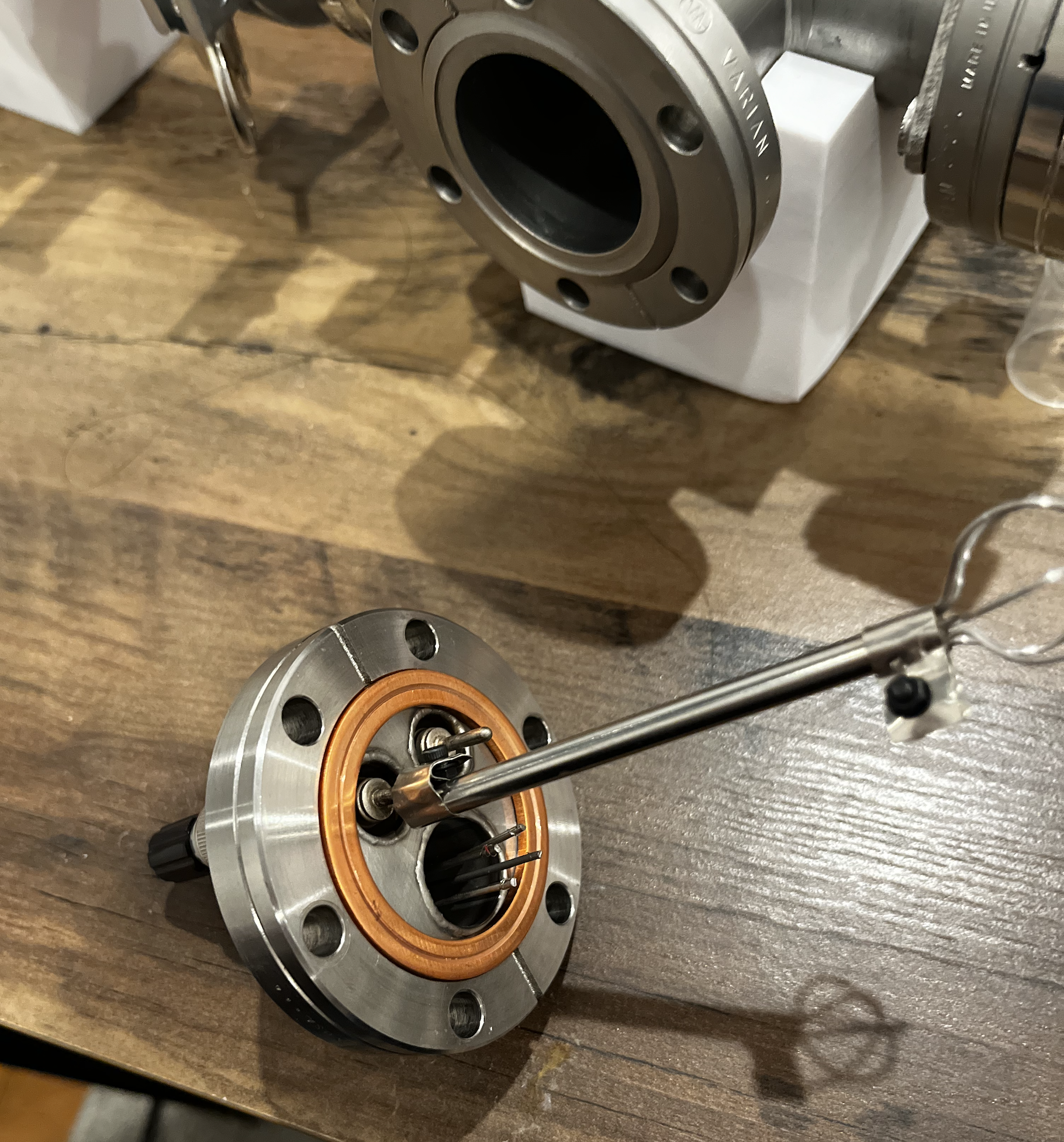 I bought a 30kV high voltage feedthrough to provide power into the system, while maintaining the vacuum.